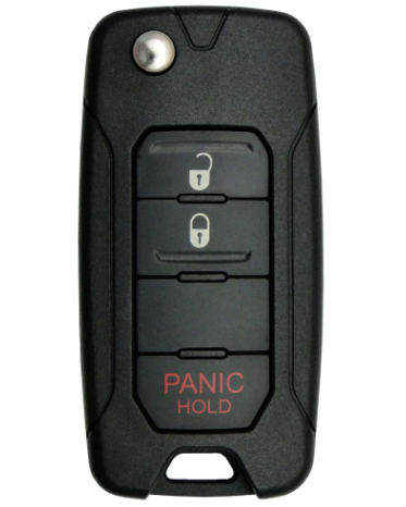 Această cheie Jeep include telecomanda și cipul transponder într-o singură carcasă.