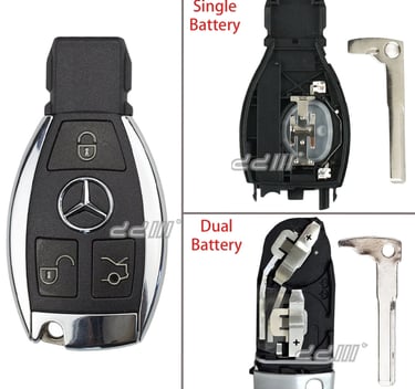 Această cheie Mercedes este utilizată pe modele mai vechi precum W202, W210 sau W208. Este o cheie tip briceag, echipată cu telecomandă (2 sau 3 butoane), transponder pentru imobilizator și sistem de comandă.